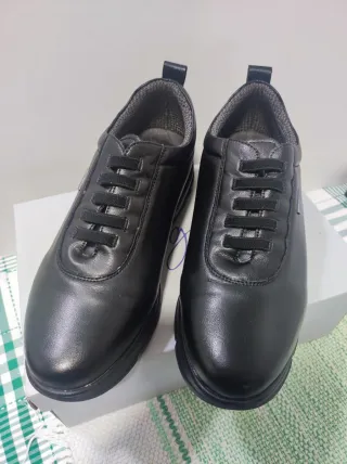 Zapatos de vestir para mujer, en perfecto estado, usados solo una vez. - Diseño elegante en color negro. - Material impermeable (waterproof). - Talla 39. - Vendo porque me equivoqué en la talla al comprarlo.