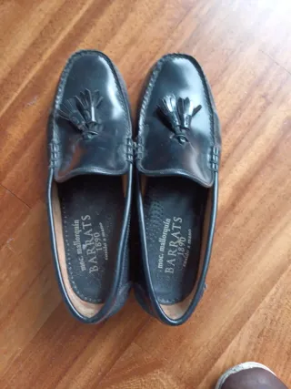Elegantes mocasines de piel en color negro, perfectos para un look formal o casual. - Fabricados en piel de alta calidad. - Diseño clásico con detalle de borlas. - Suela cosida a mano para mayor durabilidad. - Interior con logo de la marca Barrats y detalles de fabricación.