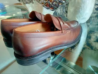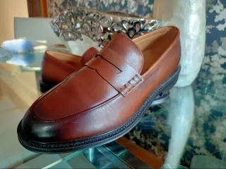 Elegantes mocasines de piel en color marrón. Un clásico que no pasa de moda. Preciosos. Están sin uso, me los he puesto en casa un rato y me están holgados. Aunque marca una talla 41 es más bien una 42 europea. - Diseño tipo penny loafer. - Acabado pulido en la puntera. - Suela de goma negra.