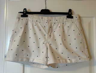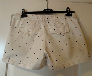 Unos pantalones cortos color marfil muy versátiles con un toque divertido y elegante gracias a su estampado de estrellas azules. Perfectos para un look náutico o de paseo. Cintura ribeteada (toque de calidad), tejido consistente, cierre con cremallera y botón. El contorno completo mide 85cm. Bajos ligeramente remangados, cuatro bosillos, traseros con solapa y pequeño bolsillo dentro de uno delantero. Estado como nuevo, tiene apresto, pues solo puesto una vez. Limpio y listo para usar. A juego tengo la blusita.