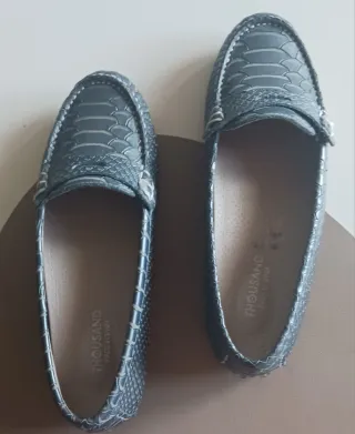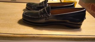 mocasín con plantilla de piel talla 36 nuevos. color azul marino