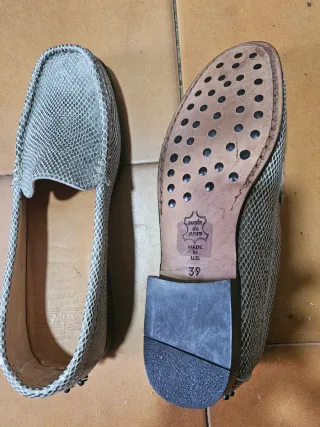 Mocasines de la marca Rofer, elaborados en piel con un diseño elegante. - Talla 39. - Color beige y gris. - Piel de alta calidad.