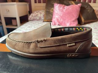 Se venden estos zapatos náuticos de la marca FAT. Son de color marrón y tienen un estilo clásico. - Son de cuero. - Tienen cordones. - Están usados, pero en buen estado.