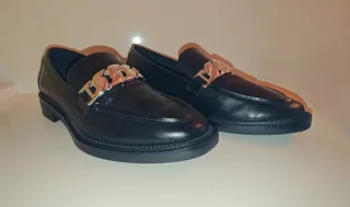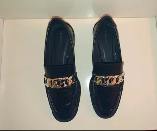 Mocasines negros de Stradivarius con un diseño moderno y elegante. - Detalle de cadena plateada en la pala. - Suela foam muy cómoda. - Talla 40.