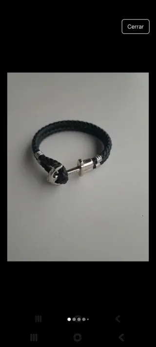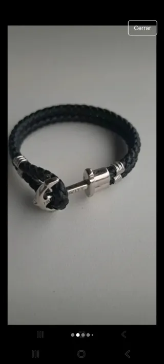 Pulsera de cuero trenzado con cierre de ancla. - Diseño náutico. - Cierre de metal plateado.