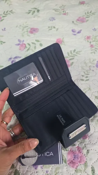 Billetera Nautica de color azul oscuro con protección RFID. - Compartimento para tarjetas. - Diseño plegable.