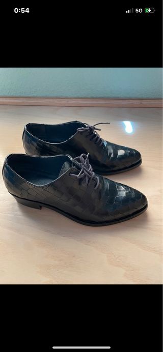 Zapatos usados no más de 5 veces cuando los compré hace un par de años. Luego no me los volví a poner al no ser de mi talla. Por esto último, los tengo que vender. A pesar de ser una TALLA 40 española, son algo amplios. La medida interior del zapato es de 26cm (como se puede apreciar en la última foto)