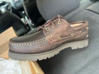 Zapatos náuticos de cuero en color marrón. - Diseño clásico de mocasín. - Cordones de ajuste. - Suela de goma. (Solo se han sido usados en una ocasión)