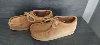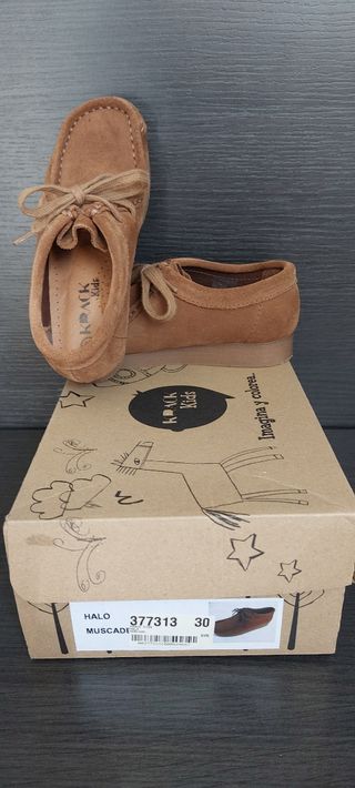 Mocasines de ante Color marrón-camel Marca Krack Talla 30 Niño Mocasines que solo han sido usados 1 día en una boda. La suela está bien. La plantilla interior de cuero está bien. Las punteras están un poco rozadas, es decir, el ante un poco oscurecido, pero no están peladas.
