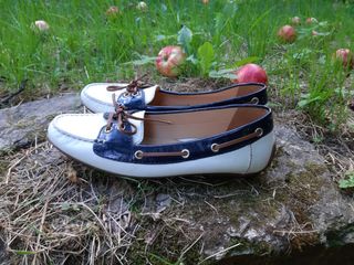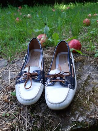Náuticos Geox de cuero blanco y azul marino. Puestos en una sola ocasión