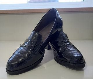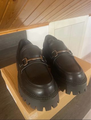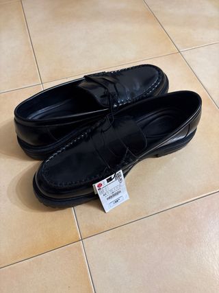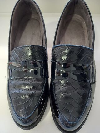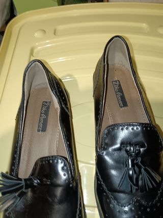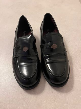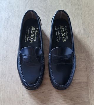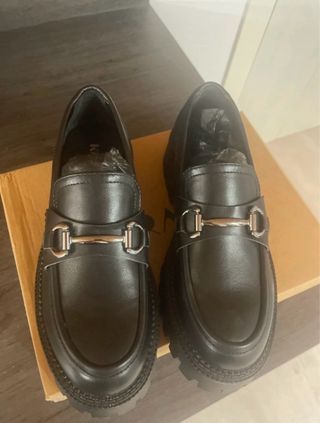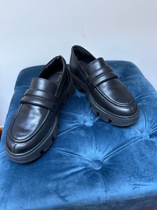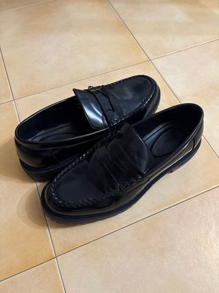Elegantes mocasines negros, perfectos para cualquier ocasión formal. Parecen muy cómodos y tienen un diseño clásico. Acepto ofertas razonables. - Acabado brillante. - Suela de goma. - Detalle de pespunte