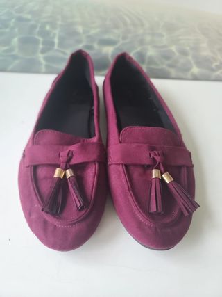Mocasines de Lefties color burdeos con borlas. Talla 40. Usados 1 sola vez