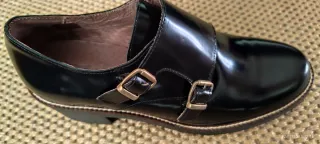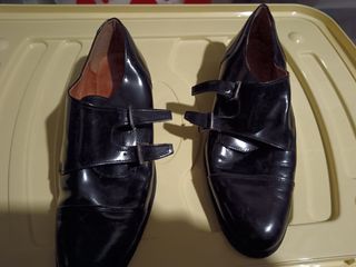 Zapatos de charol negros, usados una sola vez. - Comprados en comercio local. - Cierre con hebilla.