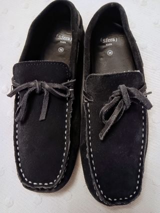 Mocasines nuevos , piel serraje ,azul marino N 36 .Marca SFERA