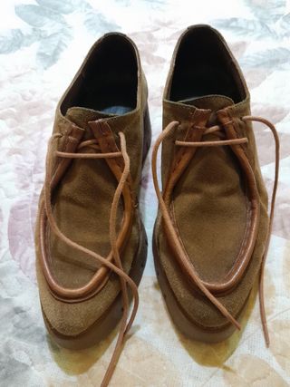 Zapatos de ante para chico. 2 horas de uso en un desfile - Cierre con cordones. - Detalle de pespuntes.