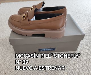 Preciosos mocasines de piel de la marca STONEFLY, talla 39. Están completamente nuevos, sin estrenar. Precio nuevos 110€ - Diseño elegante y cómodo. - Suela track gruesa. - Hebilla dorada.