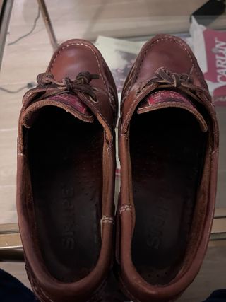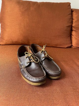 Se venden estos zapatos náuticos marrones. Son de cuero y tienen un diseño clásico. - Son de cuero. - Tienen cordones. - Están en buen estado.