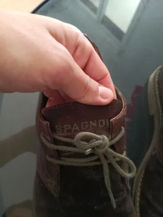 Es una talla 36. Mide 23 cms. Envío más fotos sin compromiso (no me han dejado subirlas porque pesan). Cordones originales de cuero. Se puede atar, aunque falta un trozo. Azul oscuro casi negro.
