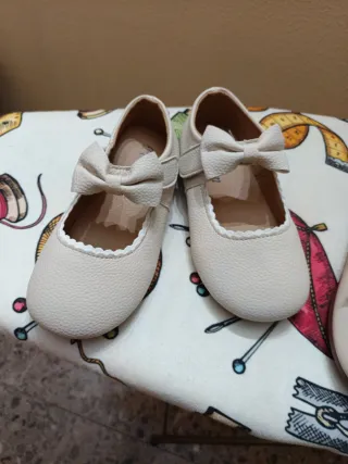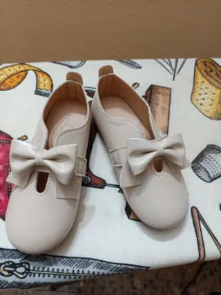 Preciosos zapatos para niñas con un diseño encantador. - Color beige. - Detalle de lazo. - Borde festoneado.