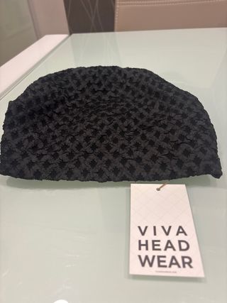 Gorro oncológico con un diseño texturizado y moderno. - Textura tipo gofrado. - Color negro intenso. - Marca Viva Head Wear.