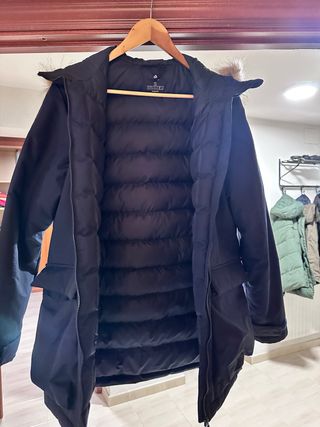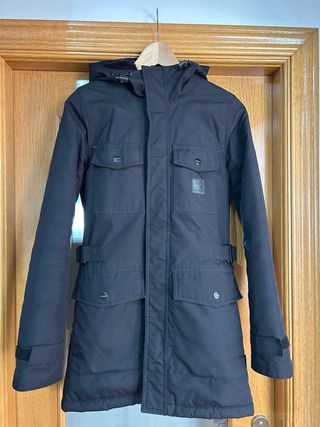 Abrigo de chica de la marca Carhartt. Color negro. Talla XS. Abriga mucho. Está usado pero muy bien conservado. El forro tiene una pequeña calva (ver penúltima foto).
