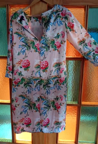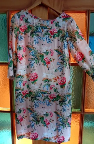 Vestido ligero con un bonito estampado de flores y aves. - Diseño de manga larga. - Cuello redondo. - Estampado floral y de aves en tonos vibrantes.