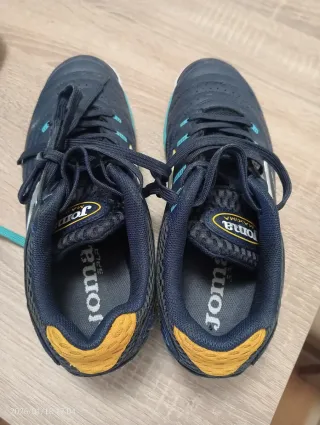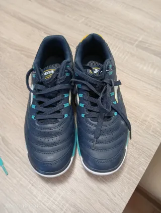 Zapatillas deportivas Joma con un diseño moderno y llamativo. - Combinación de colores azul y amarillo. - Detalle de logo en la plantilla. - Cordones a juego. - Deportivas fútbol sala