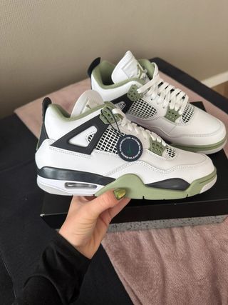 Zapatillas Jordan 4 Retro con un diseño llamativo en tonos verdes y blancos. - Diseño inspirado en el modelo Seafoam. - Talla 41.