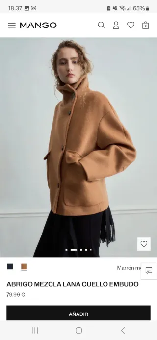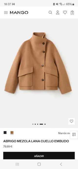 Abrigo de Mango con cuello alto. - Mezcla de lana. - Color marrón. - Diseño con bolsillos.