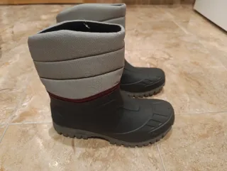 Botas de nieve con diseño acolchado en la parte superior. - Parte superior acolchada en gris. - Base de goma negra. - Banda decorativa en color burdeos.