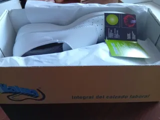Zapatos sanitarios cerrados de color blanco, ideales para entornos profesionales que requieren calzado específico. - Cierre de velcro. - Diseño perforado para mayor transpirabilidad. - Suela antideslizante. Se recogen en Carabanchel o en Navalcarnero. Se pagan x bizum o efectivo SIN ESTRENAR.