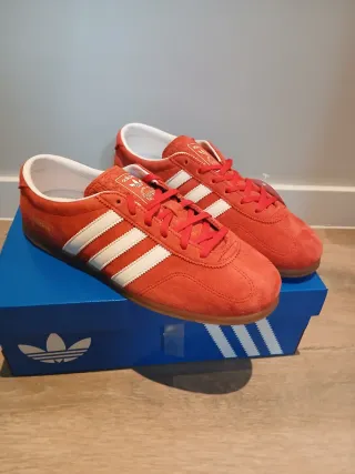 Zapatillas Adidas Gazelle en color rojo con detalles blancos. Un clásico atemporal. - Diseño deportivo. - Tres rayas icónicas de Adidas.