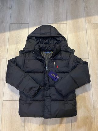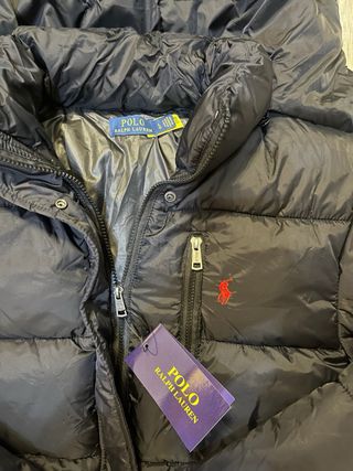 Abrigo acolchado de la marca Ralph Lauren. - Diseño con capucha. - Cierre de cremallera frontal. - Bolsillos laterales.