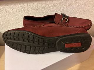 Zapatos de ante en color rojo. - Detalle de hebilla metálica en la pala. - Costuras decorativas. - Suela de goma antideslizante.