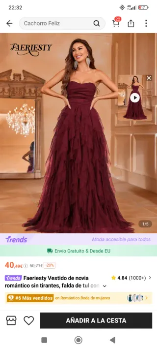 Vestido de fiesta Faeriesty con falda de tul. - Diseño sin tirantes. - Color rojo vibrante.