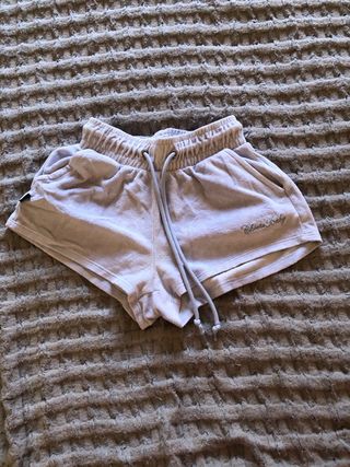 Pantalón corto de tejido suave y cómodo. - Cintura elástica con cordón. - Bolsillos laterales. - Detalle de texto bordado.