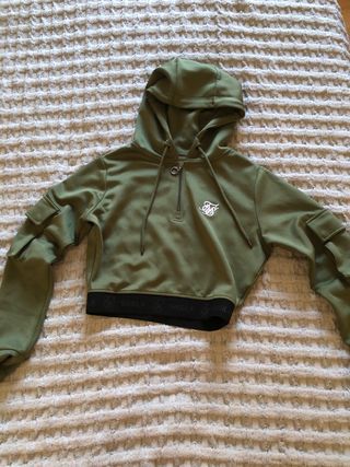 Sudadera corta de color verde con detalles de la marca SikSilk. Diseño moderno y cómodo. - Cremallera frontal. - Capucha con cordones. - Bolsillos en las mangas. - Cintura elástica con logo.