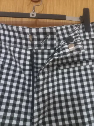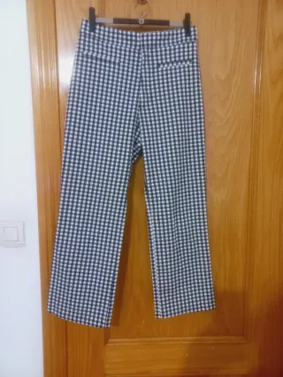 Pantalón de cuadros de Pull&Bear. - Diseño de cuadros blanco y negro. - Corte recto. Talla S