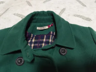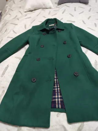 Abrigo de Stradivarius en color verde. - Diseño de doble botonadura. - Forro interior a cuadros.