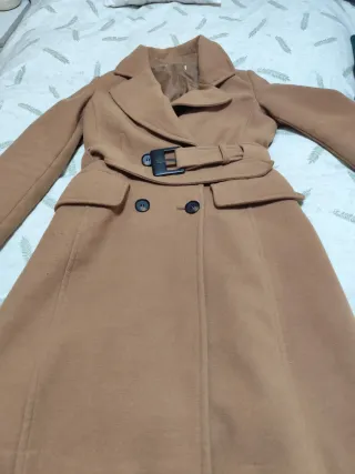 Abrigo elegante de color marrón. Cuenta con un cinturón para ajustar la cintura y botones. - Diseño cruzado. - Bolsillos frontales con solapa. - Cuello solapa clásico.