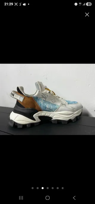 Zapatillas de diseño con un llamativo estampado. - Combinación de colores azul y blanco. - Detalle de logo de la marca. - Cordones con texto.