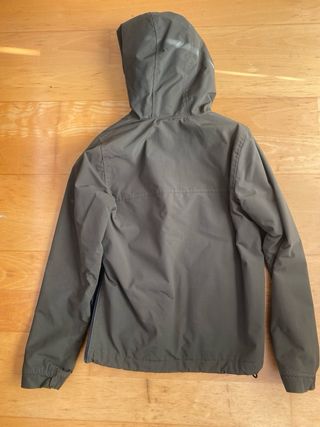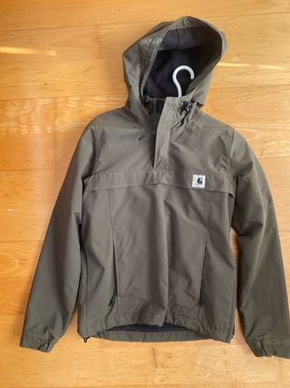 Chaqueta Carhartt con capucha y forro interior. - Color verde oliva. - Diseño tipo anorak. - Bolsillo frontal tipo canguro. - Cierre de cremallera parcial. - Cordones ajustables en capucha y bajo.