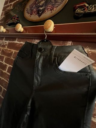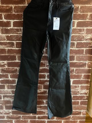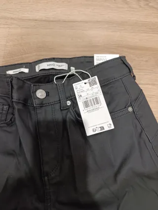 Pantalón de corte ajustado estilo skinny, con un acabado encerado que le da un toque moderno. Disponible talla 38 y talla 40. - Diseño de cinco bolsillos. - Cierre de cremallera y botón. - Tiro alto. - Más pantalones sin estrenar en mi armario (y sin publicar) o en muy muy buen estado. Tallas desde 34 a 42. Pregunta sin compromiso.