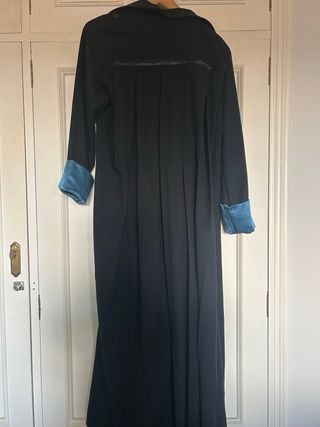 Túnica con banda, ideal para ceremonias. - Diseño elegante. - Detalles en azul en los puños. - Insignia con balanza y cruz en el pecho.