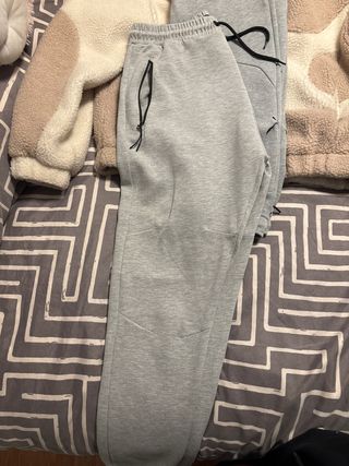 Pantalones deportivos de Pull&Bear en color gris. - Cintura elástica con cordón. - Bolsillos laterales con cremallera. - Tejido suave y cómodo.