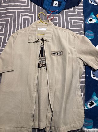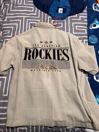 Sobrecamisa con diseño Canadian Rockies de 1994. - Estampado frontal con montañas y texto. - Cuello camisero. - Manga corta.