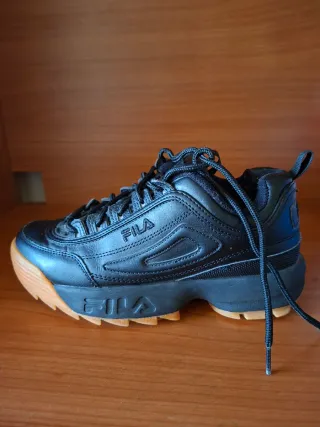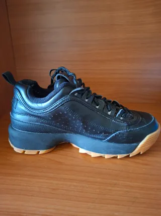 Zapatillas Fila Disruptor en color negro y suela marrón. - Diseño moderno y robusto. - Detalle de logo en la lengüeta y lateral. - Con poco uso, muy bien conservados