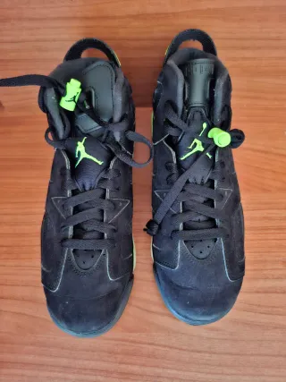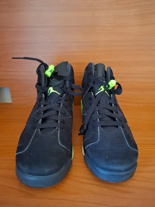 Zapatillas deportivas Jordan para hombre con un diseño llamativo. - Exterior en piel ante en negro. - Detalles en color verde neón. - Cierre con cordones. - Con poco uso, muy bien conservados