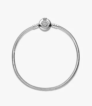 Elegante pulsera Pandora con cierre de seguridad adornado con circonitas brillantes. Talla 18 cm Totalmente sin estrenar, me costo en tienda original 79€ - Cierre circular con diseño de corona. - Detalles de circonitas cúbicas transparentes.