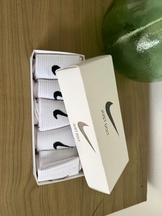 Pack de 🧦 calcetines blancos ⚪️ totalmente nuevos sin usar 🚫 Diseño con el icónico logo de Nike☑️ Confeccionados en un material suave y transpirable. Ideales para el día a día o para actividades deportivas 🏋️🚴